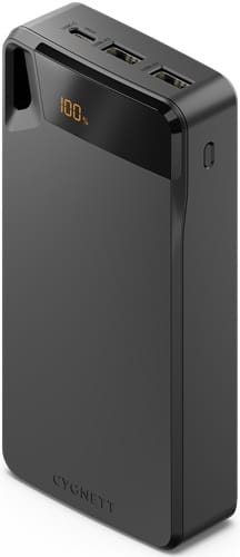 Cygnett CY4751PBCHE, 20K mAh Power Bank, 15W Max Power Output, 1x USB-C 15W, 2x USB-A 15W, Digital Display, Black